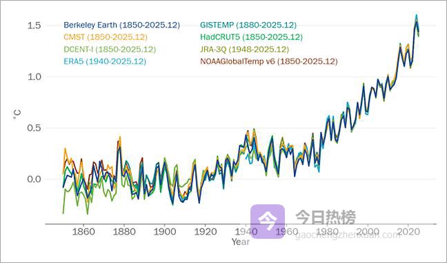 所以,全球气候越来越极端了,并且在不同时段发展,然而从全球变暖的趋势来看,依然没有停止,2025年全球地表平均温度较工业化前水平(1850-1900年平均值)升高1.40℃,较常年值(1991-2020年平均值)偏高0.52℃,成为全球有气象记录以来最暖的三个年份之一,而且这还是在拉尼娜状态发展之下带来的变化。