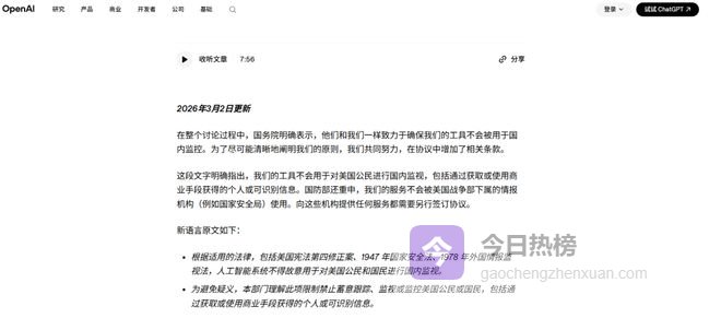 就在Anthropic沦为“弃儿”的数小时后,OpenAI就宣布与五角大楼达成协议。