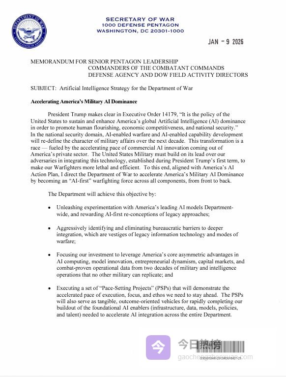 事件的起因要追溯到1月9日,美国国防部长赫格塞斯发布了一份备忘录,呼吁在军队中广泛整合AI,并要求合作公司“无限制”地提供技术支持。这意味着所有AI公司都需要重新谈判合同,已经在美国关键部门大量部署Claude的Anthropic,成了谈判的焦点。