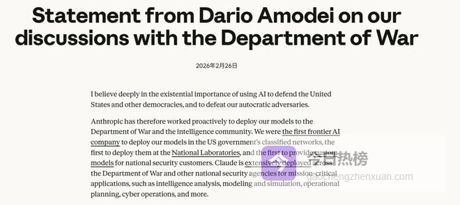 Anthropic2月26日声明截图