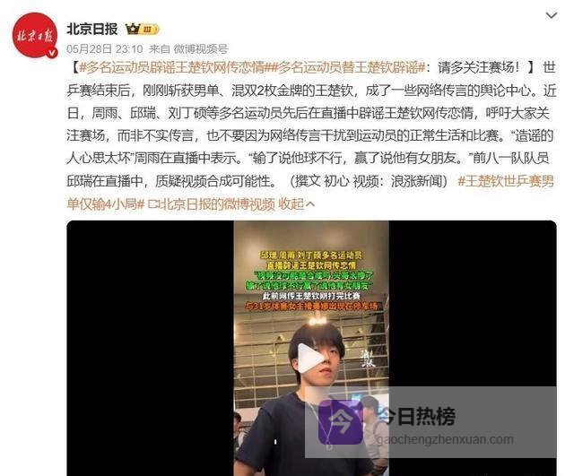 “王楚钦和美娜在一起”的事情,瞬间把各大平台的热度撑得跟火山爆发似的!