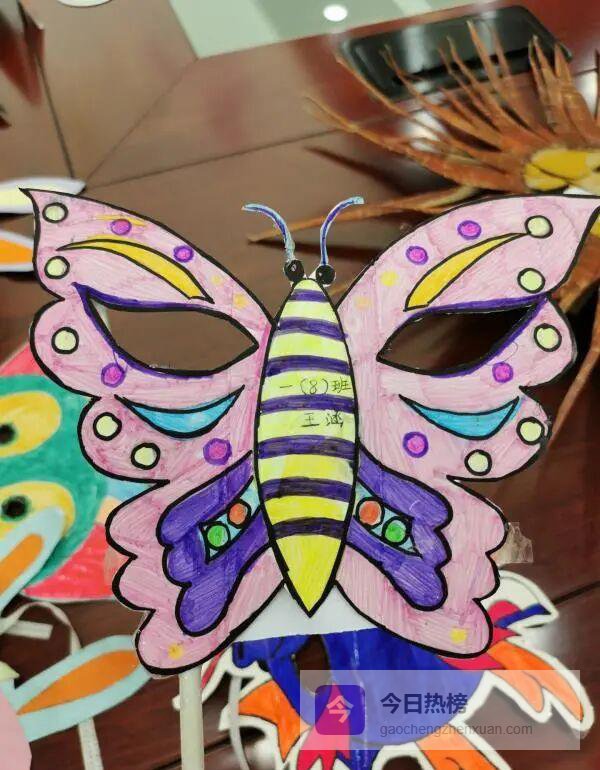 一年级的小C不会写名字,就在面具右下角画了一只小小的、会眨眼的兔子,说:“它帮我参赛。”