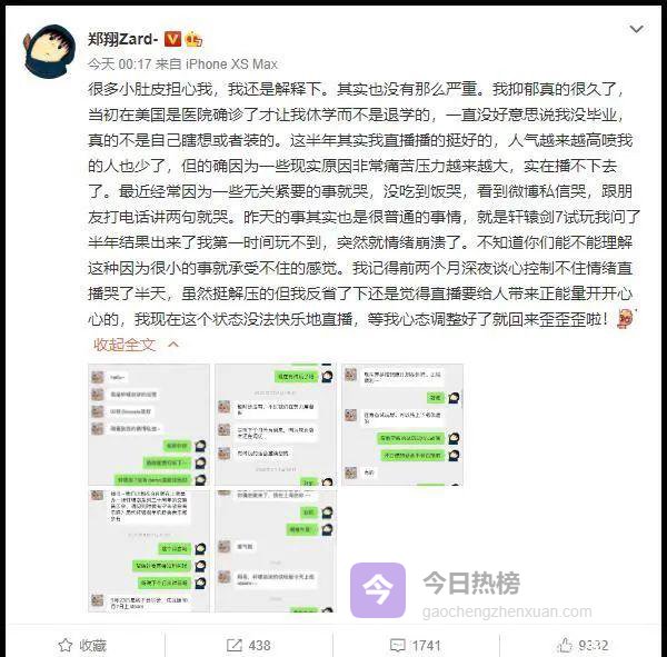 终于,翔哥Zard的账号有了动静——他罕见地宣布“先离开互联网一段时间”。