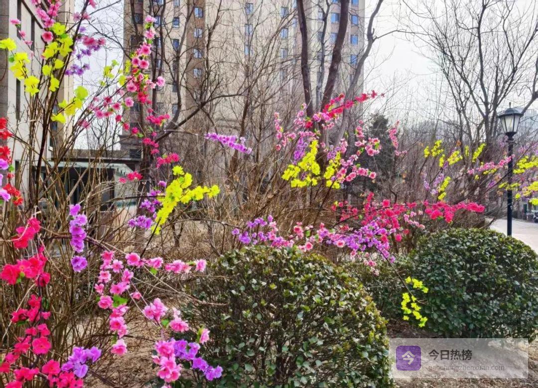 2.1 ◇ 物业化身“年味营造师”物业工作人员化身“年味营造师”,针对冬季树木光秃影响景观的难题,动起“化秃为美”的巧思:精选仿真花卉,错落缠绕在枯枝之上;数百只手工折叠的红色风车,与一串串红灯笼一同挂在小区主要出入口,“风车转福运,灯笼照吉祥”的喜庆氛围扑面而来。
