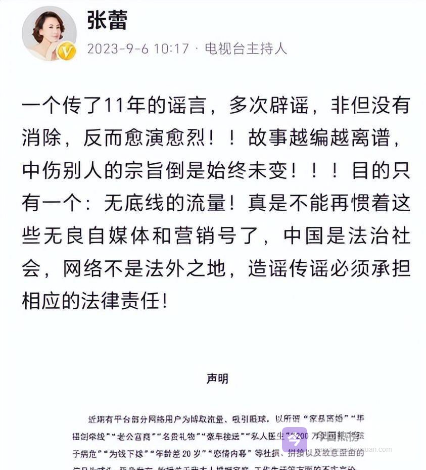 有人说张蕾包养了四个男人,还嫁给了70岁的富翁,这些央视主持人的私生活谣言真是天花乱坠,太离谱了!