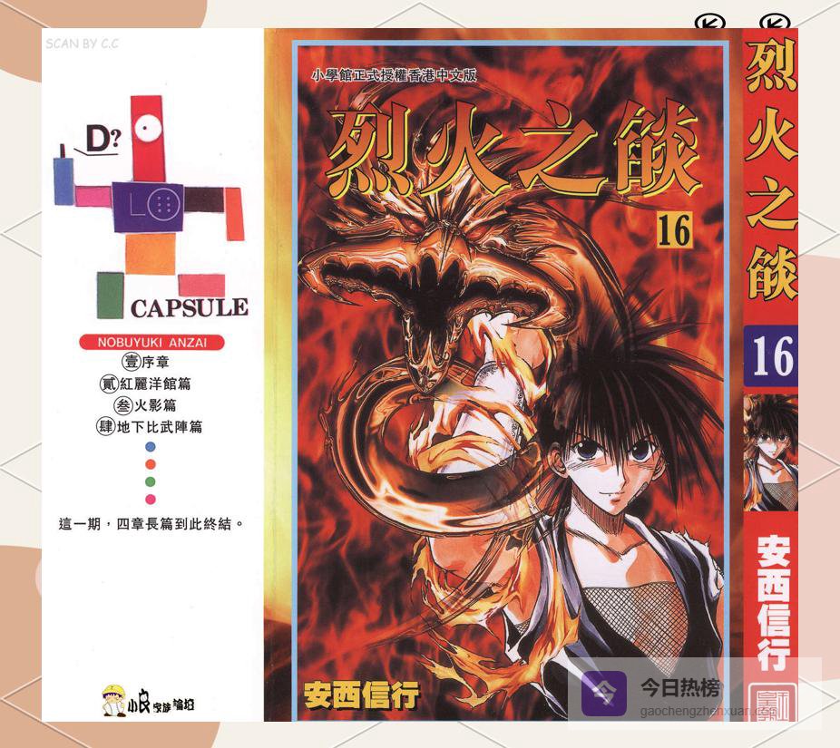 《烈火之炎》是安西信行在1995—2002年于小学馆《周刊少年Sunday》连载的热血格斗漫画,后被改编为电视动画。故事以“火焰”与“时空”为双核,把忍者的冷兵器时代与魔导具的蒸汽朋克未来缝在一起,上演了一出少年成长与家族复仇并行的长篇史诗。