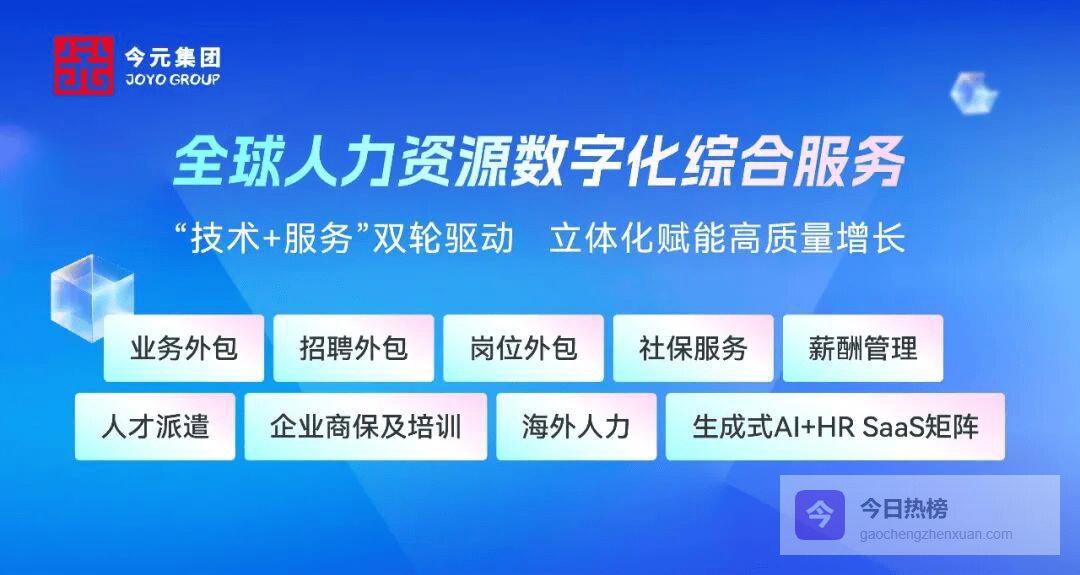 集团以“技术+服务”双轮驱动为核心发展模式,依托自主研发的“生成式AI+HR系列产品”“AI+全球人才管理平台”,联动旗下金柚网、今元人才、金柚GEO、今元橙长、康康ODS、梧桐范式、豆豆兼职等核心品牌,打造今元生态一体化解决方案,贯穿员工全生命周期的数字化管理闭环。