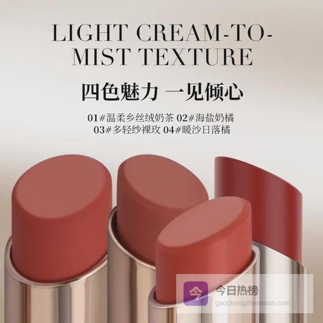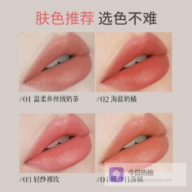 # 02海盐奶橘 03 # 04暖纱日落橘,如果大家不知道选什么, 那就选奶茶色或者奶橘,适合大部分东亚人的肤色和纯色的。我觉得性价比还是很高的。