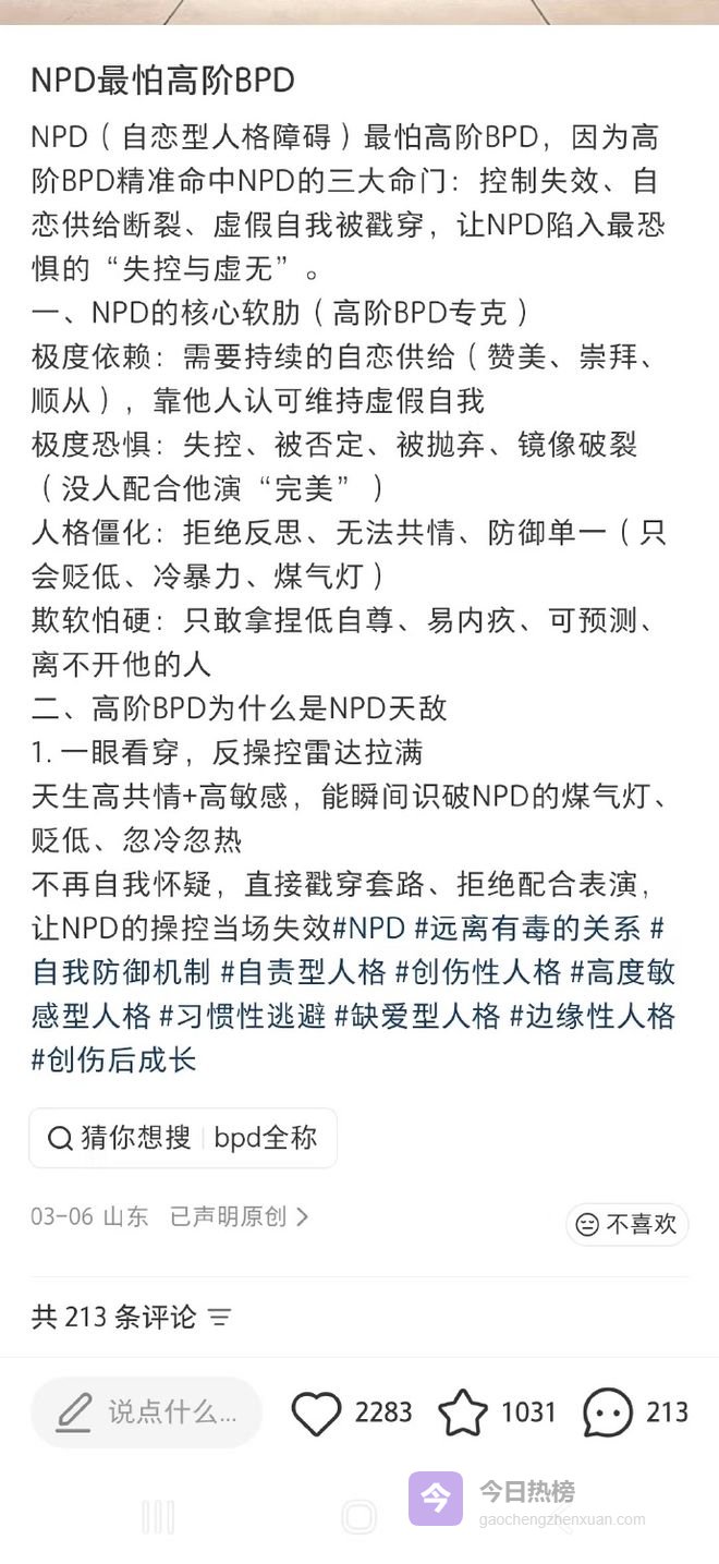 我才不要为了变成npd的“克星”而成为bpd……但我舅舅可能是bpd。