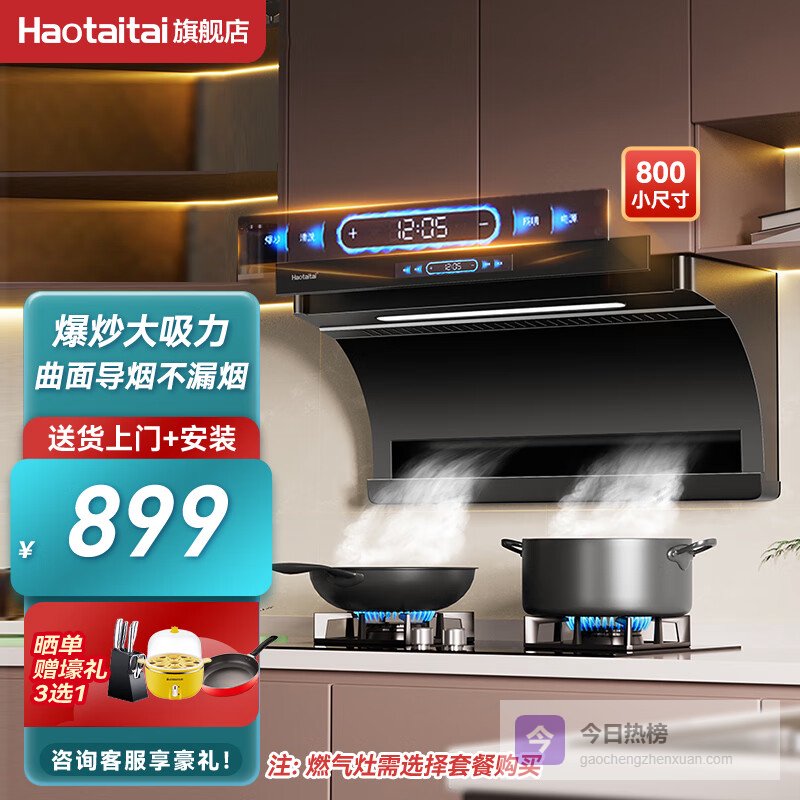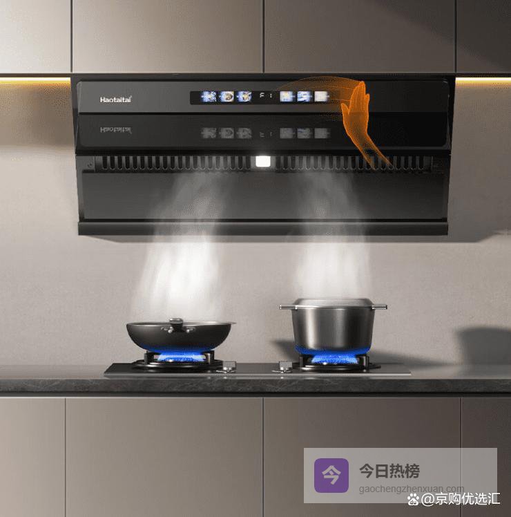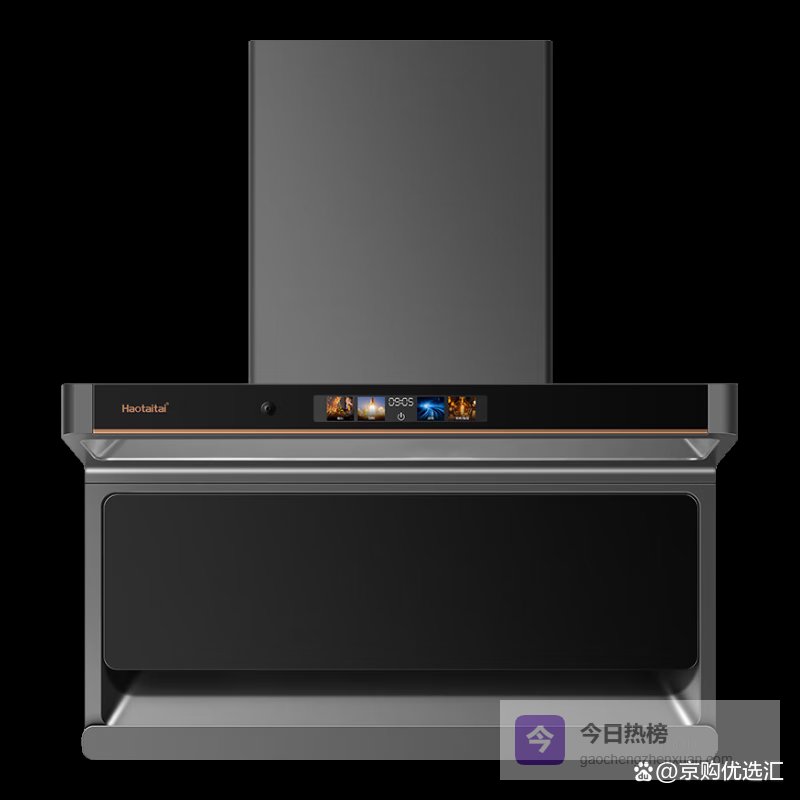 2、Haotaitai FJ9BPZ这款油烟机在吸油烟方面下了功夫!顶侧双吸结构配合26m³/min的大吸力,能迅速“吃”掉升腾的油烟,再也不怕呛人的味道啦。而且它还很智能,AI语音智控,动动嘴就能开关机、调节风量,特别方便。像面板是玻璃材质,一擦就干净,简直是懒人福音!