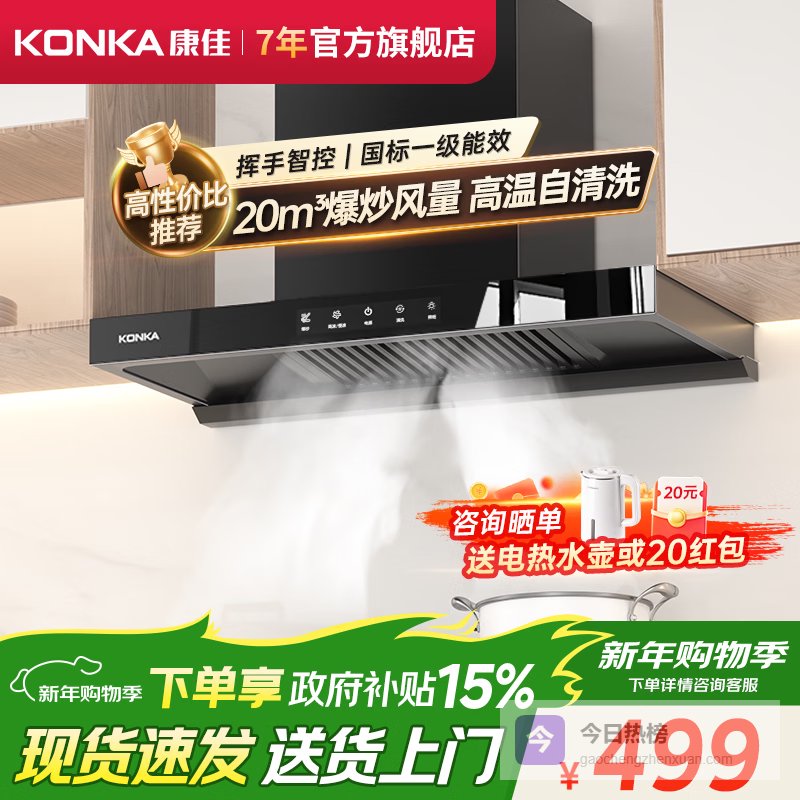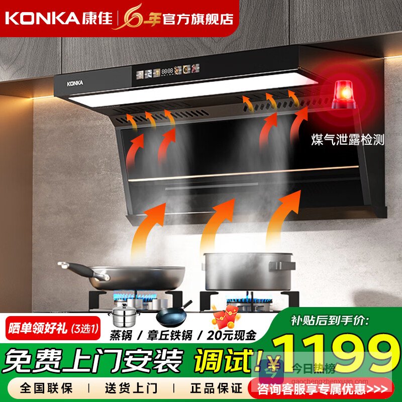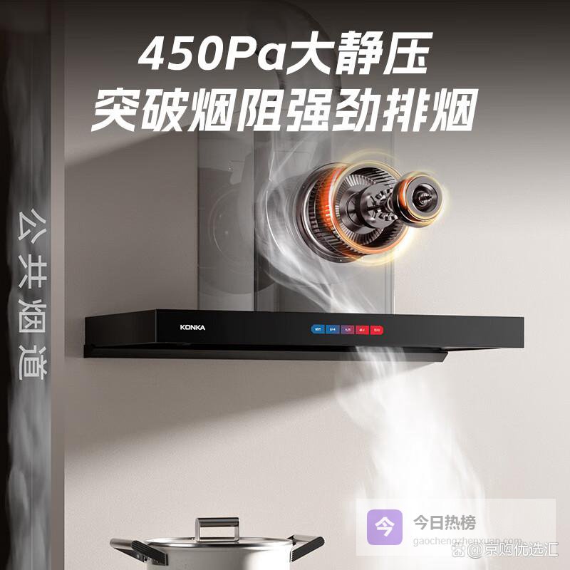 3、康佳抽油烟机这款油烟机在吸力方面下了功夫,爆炒风量高达25m³/min,轻松应对重油烟。结合895mm宽域拢烟设计,油烟刚产生就被“抓”走了,不给逃逸的机会。而且它还能根据烹饪需求调节吸力档位,贴心!