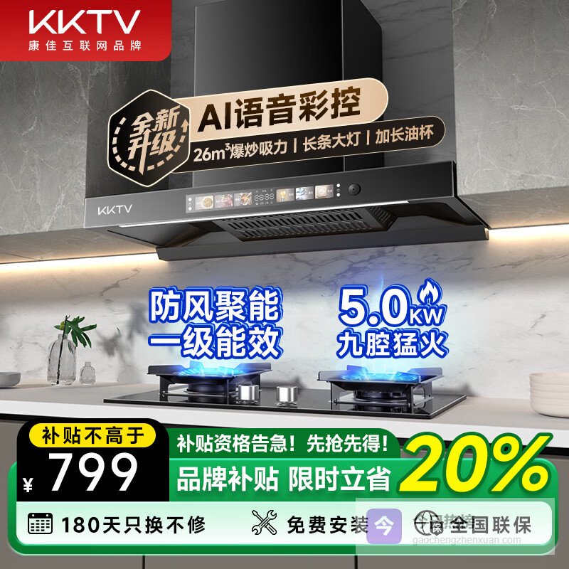 4、KKTV智控烟机这款油烟机在吸油烟方面确实有一手!26立方米/分钟的大吸力,加上三维立体拢烟通道和三重腔结构,油烟那可是“插翅难飞”。听说用过的朋友都说,自从有了它,厨房空气清新多了,再也不怕油烟味儿到处乱窜啦!而且它还巧妙地利用立体油网形成二次负压,吸力更强劲,导油也更顺畅,真是细节控的福音。