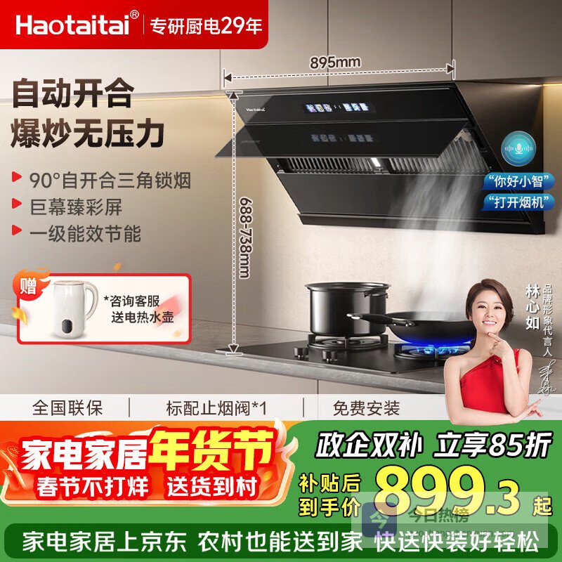 Haotaitai油烟机家用顶侧双吸抽油烟机FJ9系列 大吸力烟灶套装可选 智能语音变频挥手自清洁免拆洗 单烟机FJ9BPZ【升级变频/语音+26立方爆吸】 12T天然气¥