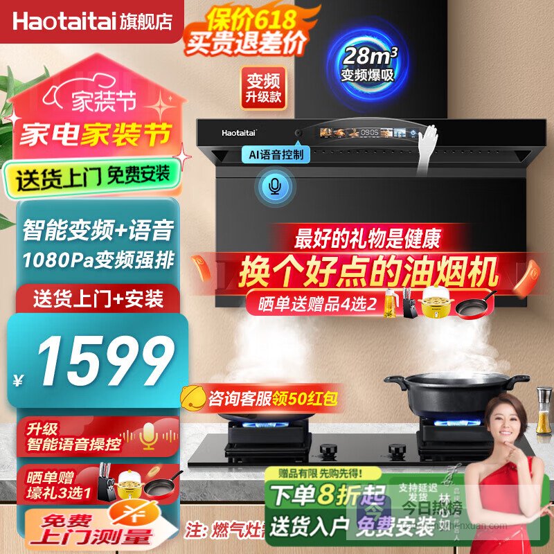 Haotaitai油烟机小旋风F88顶侧双吸变频大吸力油烟机 挥手+语音控制 自清洁免拆洗7字机烟灶套装可选 烟灶2件套【小旋风+定时控温防干烧智能灶2419】¥
