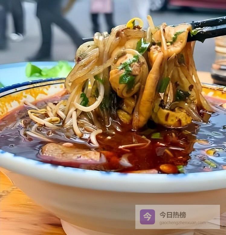 旺苍老店坚持“豌豆60%+红薯40%”的比例调粉浆,手工漏制出透明到能照见指纹的粉条;辣椒油得用旺苍本地二荆条干辣椒慢火炒再石臼捣碎,浇热菜籽油,“呲啦”一声香气冲天。炸黄豆脆到“入口化渣”,碎芽菜酸香提味,一碗下肚,额头冒汗却停不下来。当地人夏天靠它续命,冬天靠它发汗。