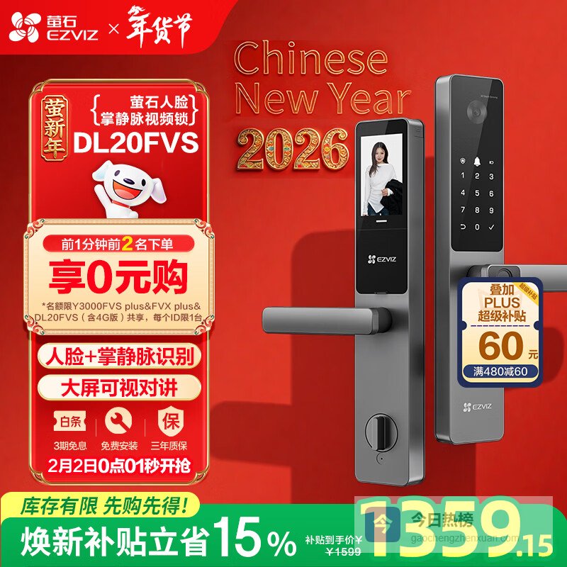 第2款:萤石Y3000FVX Plus智能锁