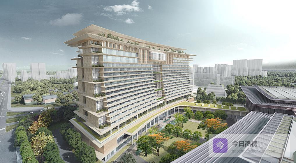 配套酒店:用地面积3.6万㎡,99.9m高22层,约1000间客房,含50m室内标准泳池与城市客厅等特色空间。