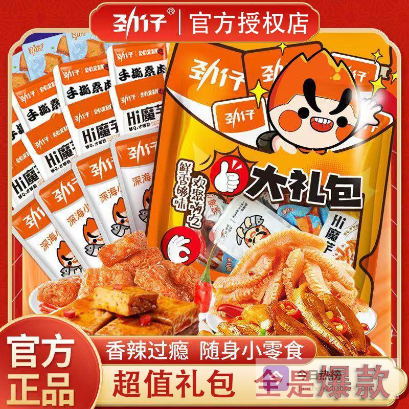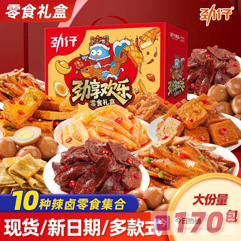 劲仔零食大礼包整箱包含多种口味组合,是年节送礼的贴心选择。652g礼盒装内含82小包,设计精美大方,既有传统"年年有鱼"的吉祥寓意,又符合现代人健康零食的需求。