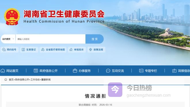 3月16日,湖南省卫健委官网发布联合调查组情况通报:
