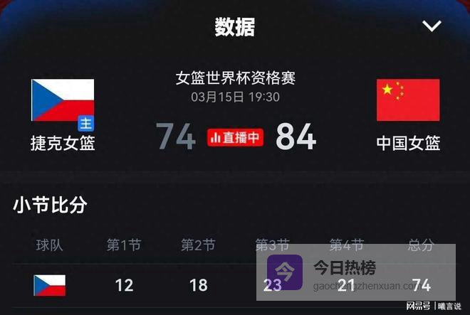 3月15号晚上,中国女篮和捷克队打了一场世预赛,中国队以84比74赢了这场球,直接拿到了2026年世界杯的入场券,