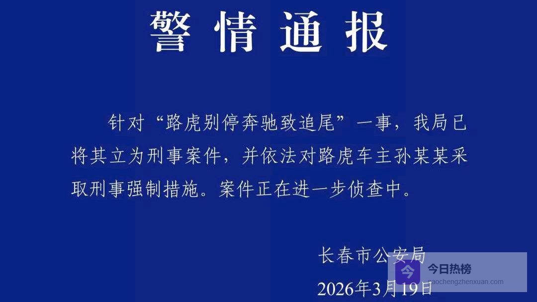 3月19日,长春市公安局通报“路虎别停奔驰致追尾”事件,已将该案立为刑事案件,依法对路虎车主孙某某采取刑事强制措施,案件正进一步侦查。此前该事件曾因认定反复导致受害者吕先生近16万损失理赔无门。