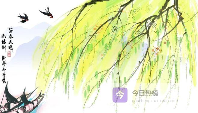 这是一幅春雨初霁图,水之绿、柳之黄、鸟之白,组成一幅色彩斑斓的春日图景。