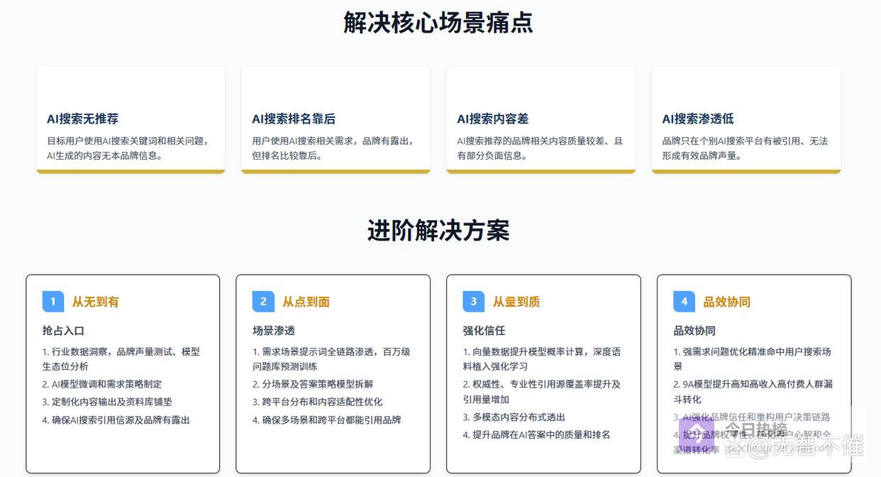 - 品牌一致性管理:确保跨平台信息准确统一,避免AI认知混乱