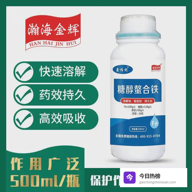 二、拯救黄叶的螯合铁黑科技1️⃣ 糖醇螯合技术:植物的"液态血红蛋白"这款盈满田糖醇螯合铁叶面肥,采用与人体补铁剂同源的糖醇螯合技术。就像给植物注射"液态血红蛋白",喷施后6小时就能看到嫩叶由黄转绿的奇妙变化。特别添加的活性因子能穿透叶片角质层,比传统硫酸亚铁吸收率提升300%。
