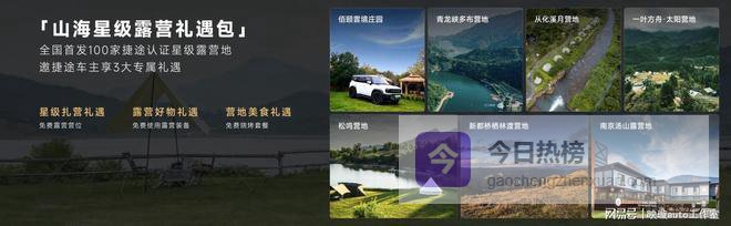 截至目前,“旅行 ”生态已涵盖上万款好物、176家高品质露营地、3000余座全球驿站,覆盖景区、住宿、餐饮、露营、越野等多元场景。此次发布会,捷途汽车发布旅行小房车繁星计划,首发100家星级露营地,为车主提供3大专属礼遇、每年省下万元露营费用;并推出3大露营生态件权益。让用户无需复杂准备,即可轻松开启一场高品质露营。