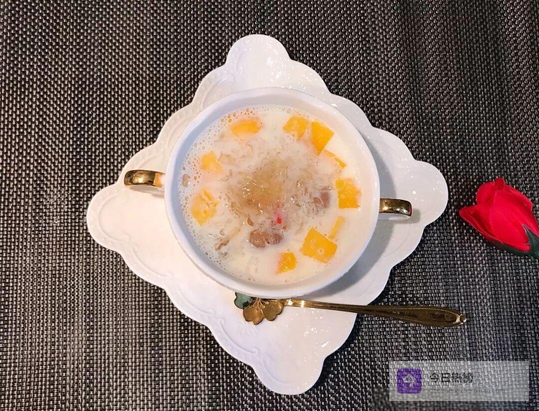 做法:燕窝加冰糖炖20分钟,再倒入鲜奶炖5分钟即可。