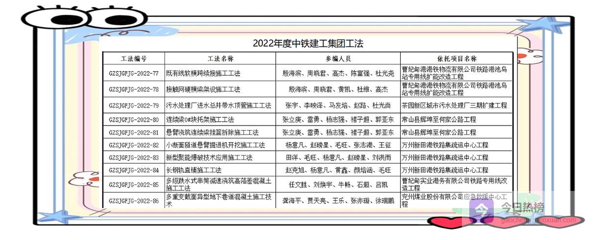 近日,集团公司发布2022年100项集团级工法名单,路桥分公司一举斩获10项,通过占比刷新近几年纪录,在集团各子分公司中跻身前五。这批工法覆盖铁路、市政、隧道、爆破等多个领域,是公司坚持“四新”技术应用的集中体现,也是技术、安全、环保、成本“四位一体”的硬核成果。