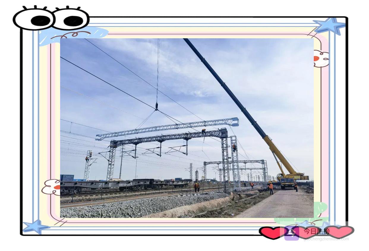 3.1 △ 有线软横跨续接:一个天窗点完成“无缝”过渡既有线软横跨续接施工工法在新线路外侧加立柱,利用天窗点把既有软横跨单侧延长至新支柱,同步拆除旧支柱。一个点内完成过渡,安全高效,为铁路繁忙干线改造提供“零干扰”样板。