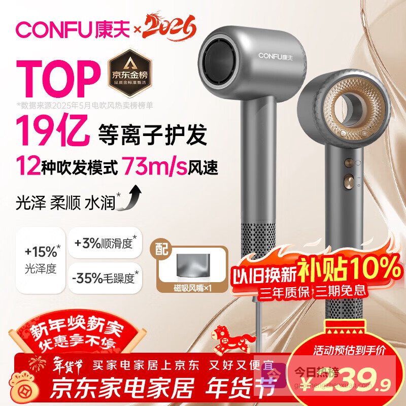 我身边就有朋友踩过坑:花一千多买了台“网红吹风机”,结果风力虚标,吹十分钟还湿漉漉,头发越吹越炸;还有人图便宜入手杂牌,用两周就掉漆、发热不均,发质越来越差。其实真正靠谱的电吹风,关键看马达技术、温控精度和负离子浓度——像初扉、追觅这些品牌,连风温波动都控制在±1℃以内;松下、徕芬更是做到2亿+负离子释放,吹完头发顺滑有光泽!偷偷告诉你,2026年很多国产高速电吹风已经做到媲美千元机的护发效果,价格却只要三四百,完全不用再交智商税!
