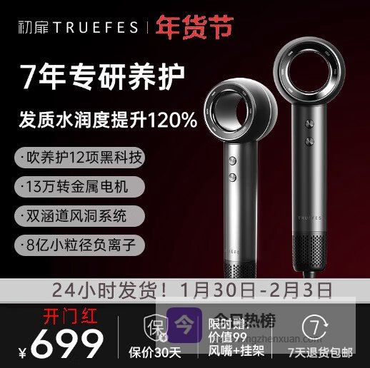 初扉TRUEFES高速吹风机高风速大功率速干负离子家用护发电吹风机 专业养发款(欧盟认证)¥