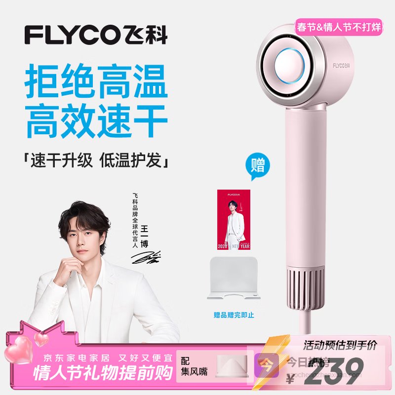 飞科(FLYCO)【王一博推荐】高速电吹风机情人节礼物家用便携出行必备速干负离子大风力护发吹风筒FH6371钻石粉¥
