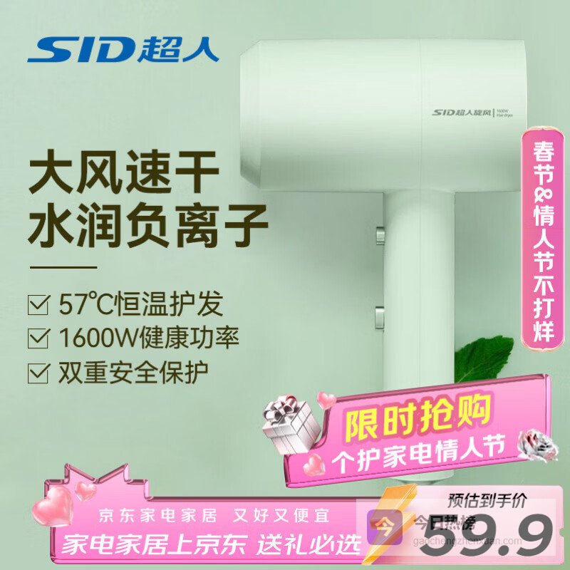 超人(SID)吹风机家用电吹风 3000万负离子大风量速干便携简约吹风筒宿舍学生用电吹风情人节礼物RD1650S¥