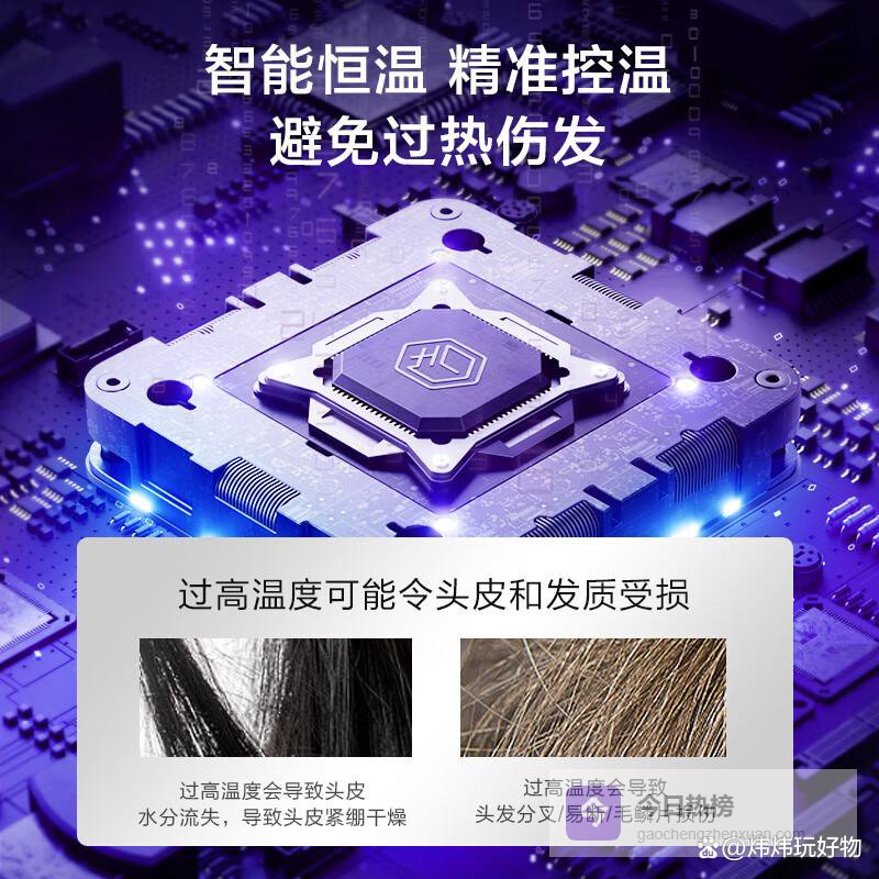 2、智能恒温,呵护秀发:内置智能温控芯片,精准控温,避免高温伤害头发。无论是冷风、暖风还是热风,都能根据你的需求调节温度,让头发在舒适的环境中自然干透,还能有效避免高温导致的头发分叉、干枯等问题。
