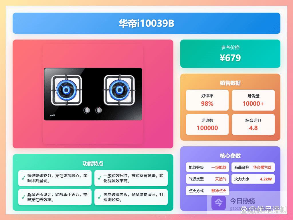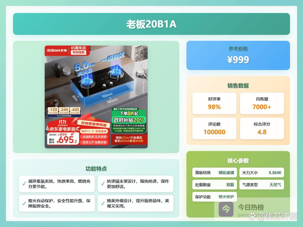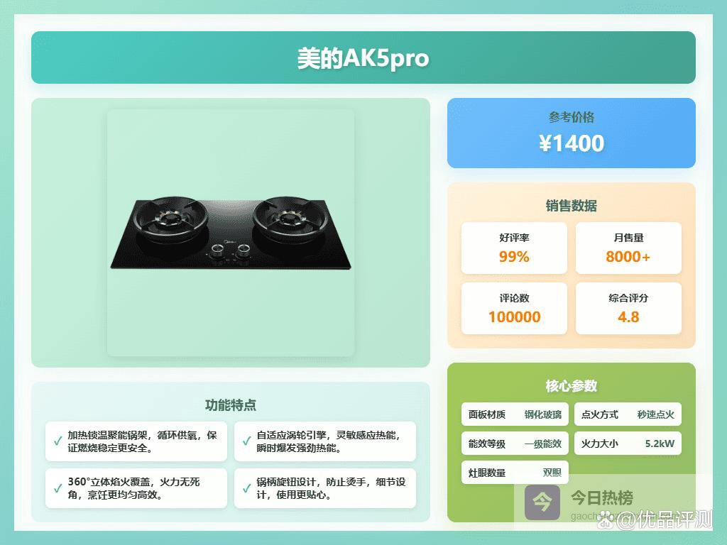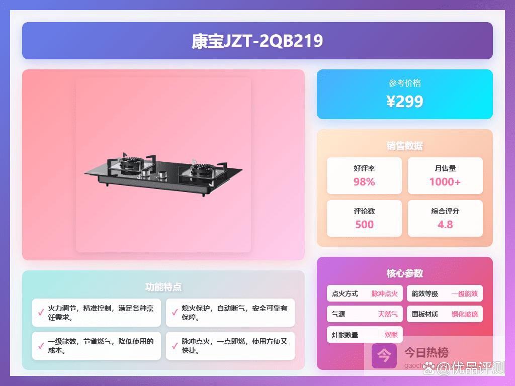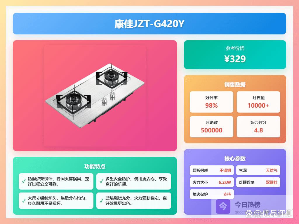 面板采用钢化玻璃材质,外观大气且清理方便。多位用户体验感还挺好,金属面板抗刮耐用,打理起来倒是比较省心。安全方面,灶具设计了多层防爆层和自动断气功能,额外保障家人安全,无论是新手还是经验丰富的厨师都能放心使用。