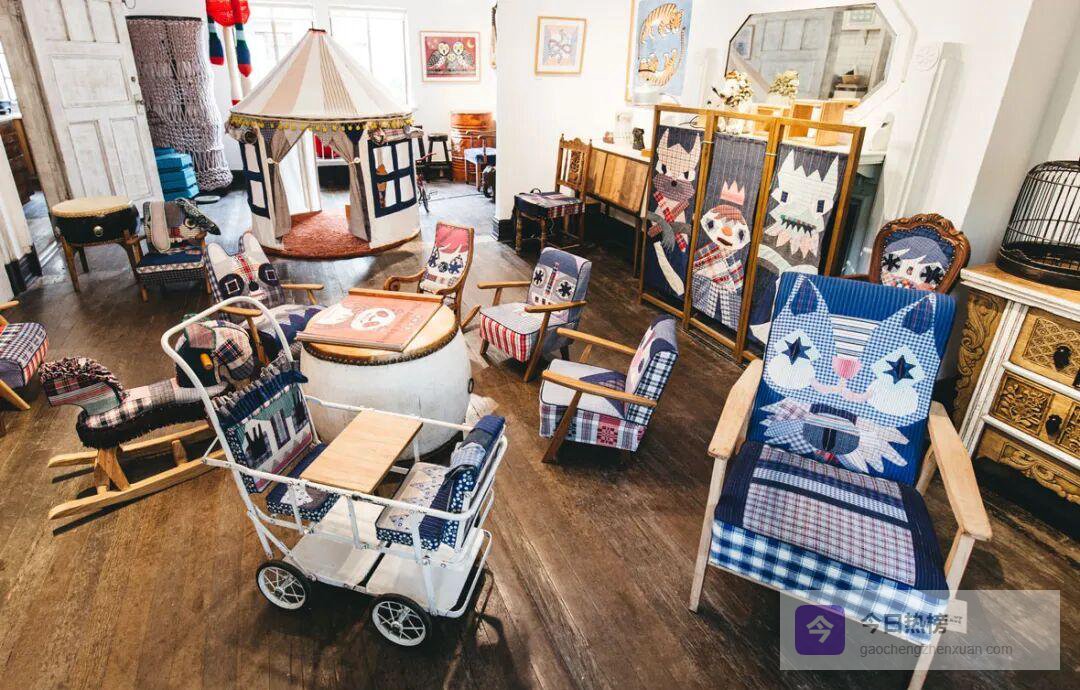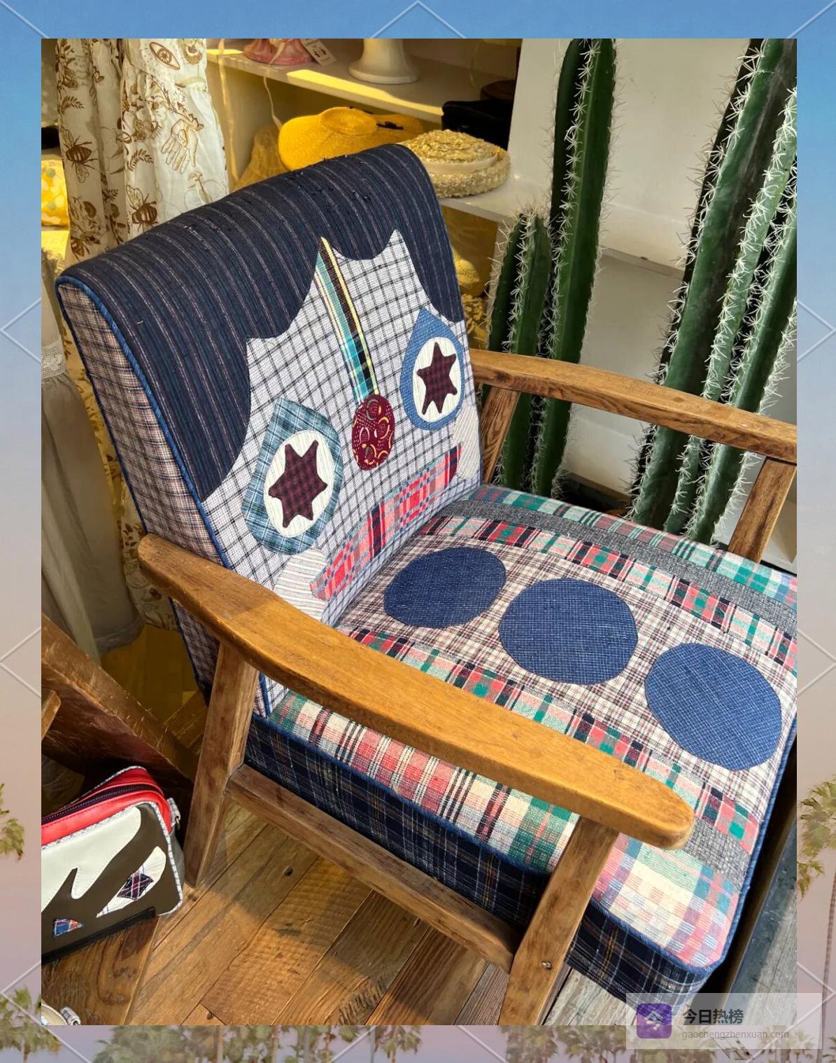 巨型拼布抱枕把笑容抱在怀里;旧家具被贴上笑脸后,瞬间化身孩子房里的“开心伙伴”;古布与超纤皮革的碰撞则让硬朗与温柔并存,每只包包都是孤品,撞包概率等于中彩票。