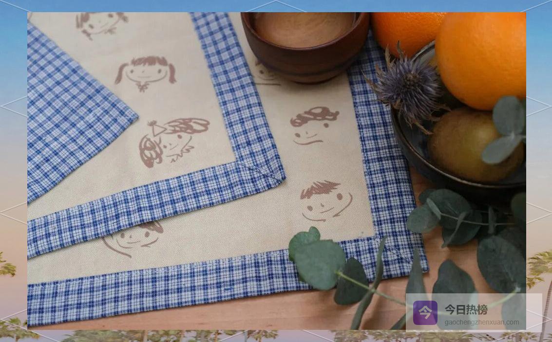 ▲ 拼布脸餐垫:不同花色的古布被拼成一张张顽皮的脸蛋,今晚市集内有售。