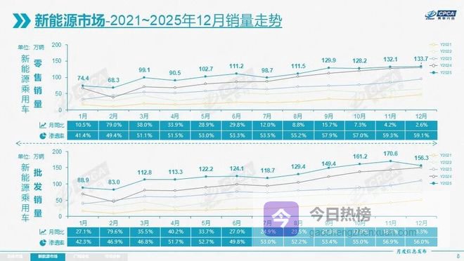 作为最直接的论据,去年12月,新能源零售渗透率一度逼近60%大关。与之形成鲜明对比的是,过去的1月、2月,却分别回落到仅有38.6%、44.9%。