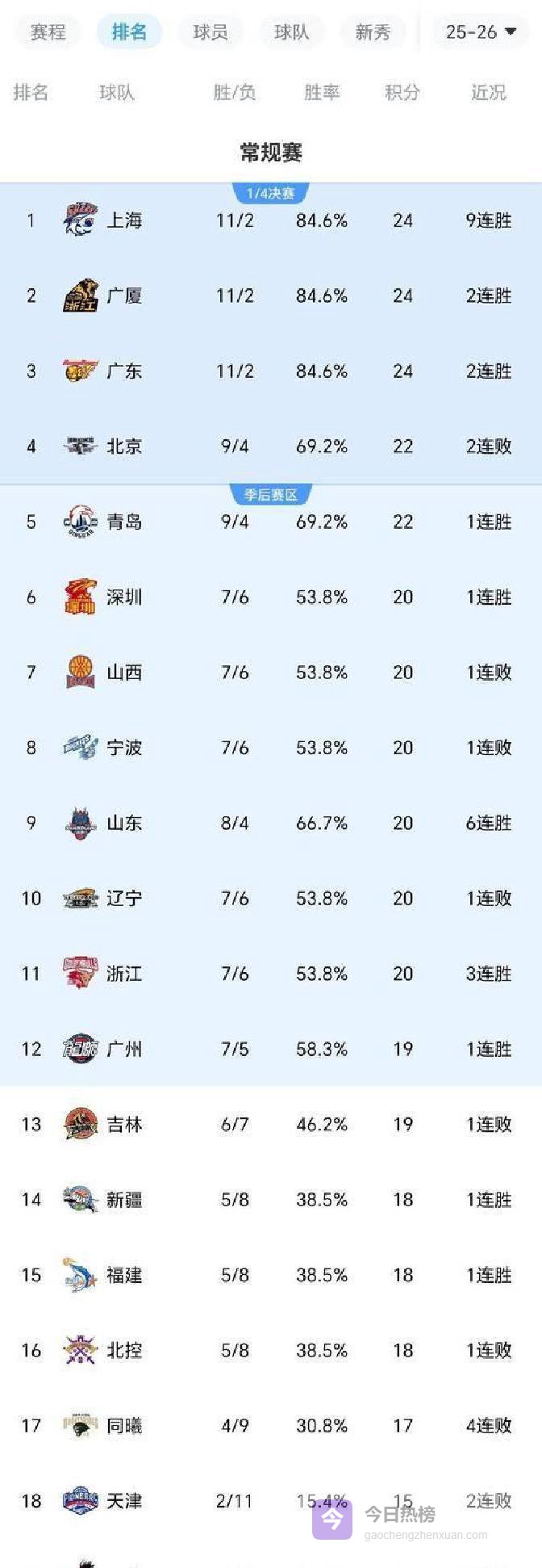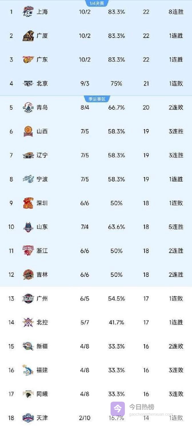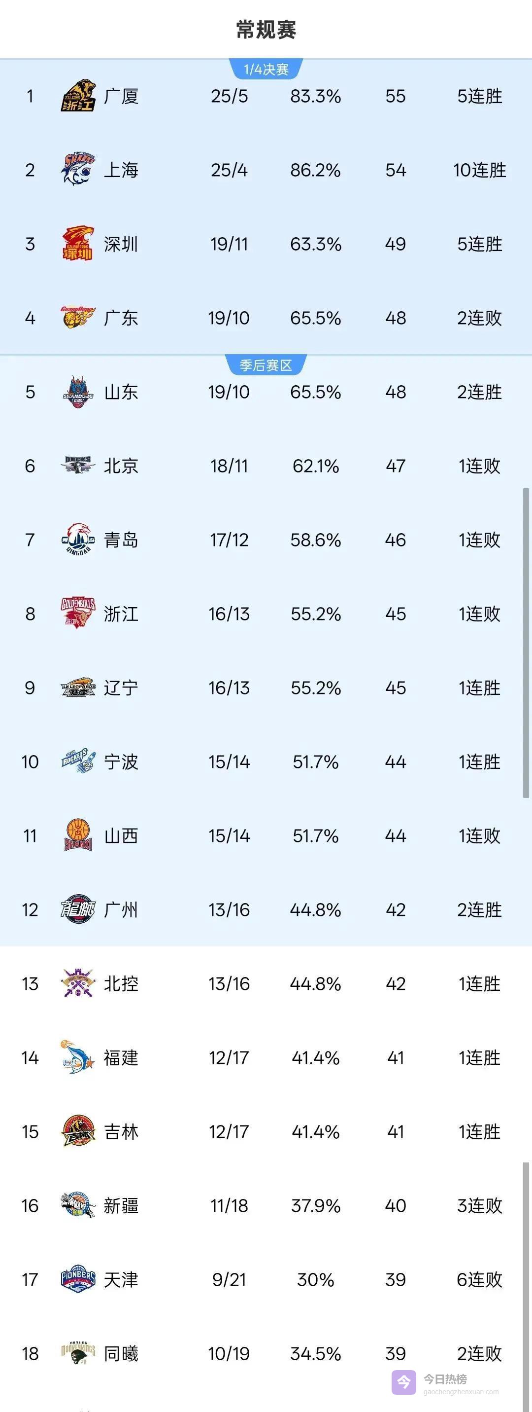 深圳也是五连胜,从第六直接蹿到第三,压住了广东、山东和北京