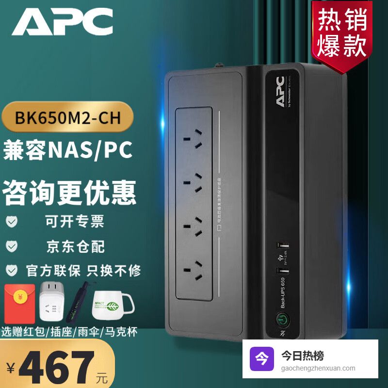 【品牌专卖】APC施耐德BK650M2-CHUPS不间断后备电源群威联通晖极空间NAS自动识别关机电¥