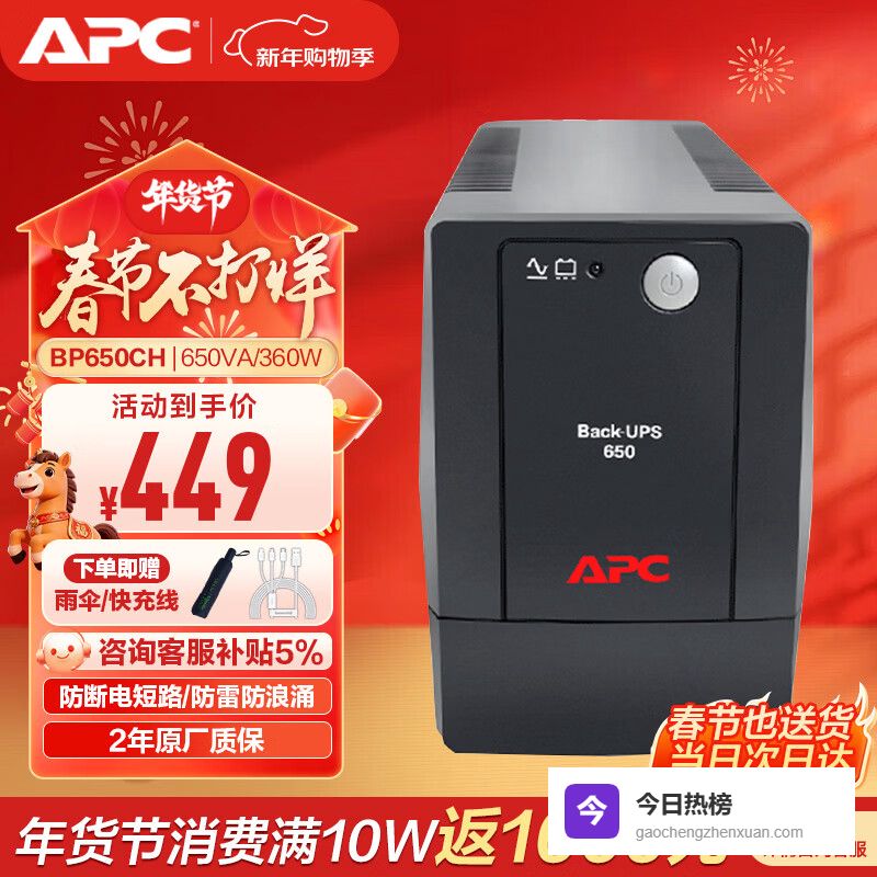 【京东自营】APC施耐德ups不间断电源BP650CH360W/650VA办公电脑网络路由应急备用电¥