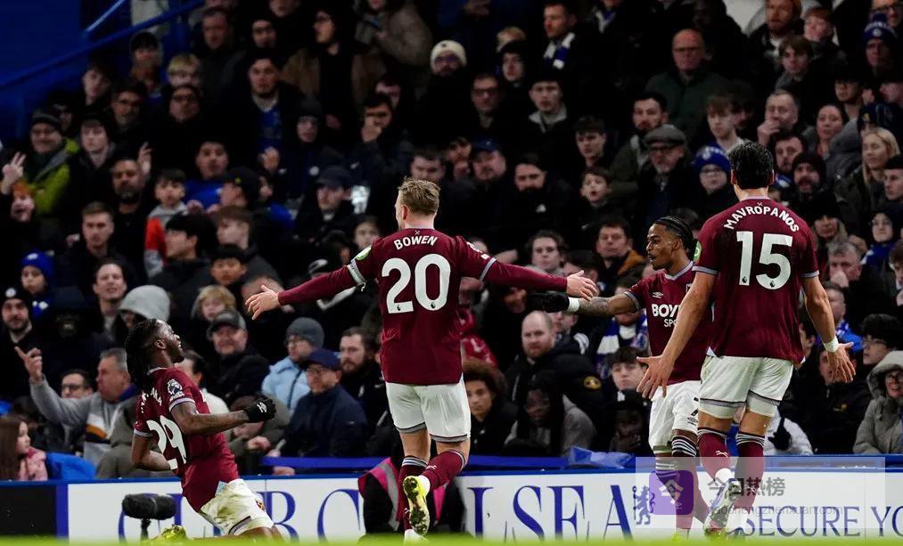 西汉姆联的鲍恩在前场右边一个传中,这球本来是想找队友的,谁知道弧度太贼,切尔西门将罗伯特·桑切斯可能被晃了一下,皮球直接旋进了远角! 1比0,西汉姆联客场领先。 这球进得,切尔西全队都懵了。