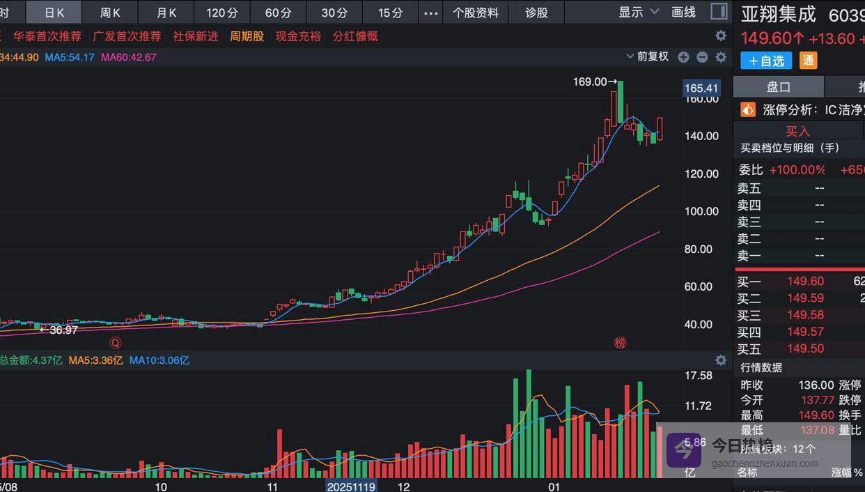 什么是能炒作的股票,看看亚翔集成,这个公司从11月份开始上涨,股价从40元一路涨到160元,股价涨了4倍,但依旧是良心上涨,其他的自己体会吧。