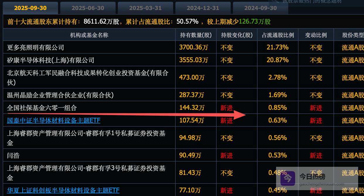 神工股份,全国社保基金601组合新进了144万股,位列第5大股东。