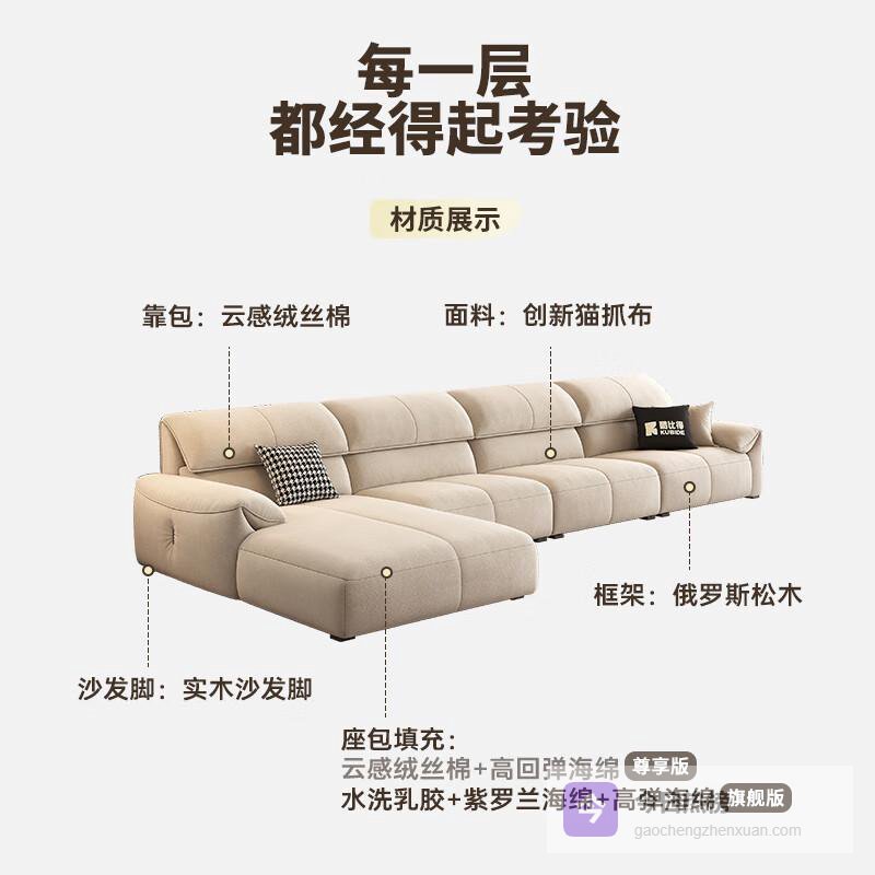 【品牌直营】酷比得2025新款现代简约奶油风沙发客厅转角贵妃组合猫抓布艺沙发3.3米单扶单+单*2+¥