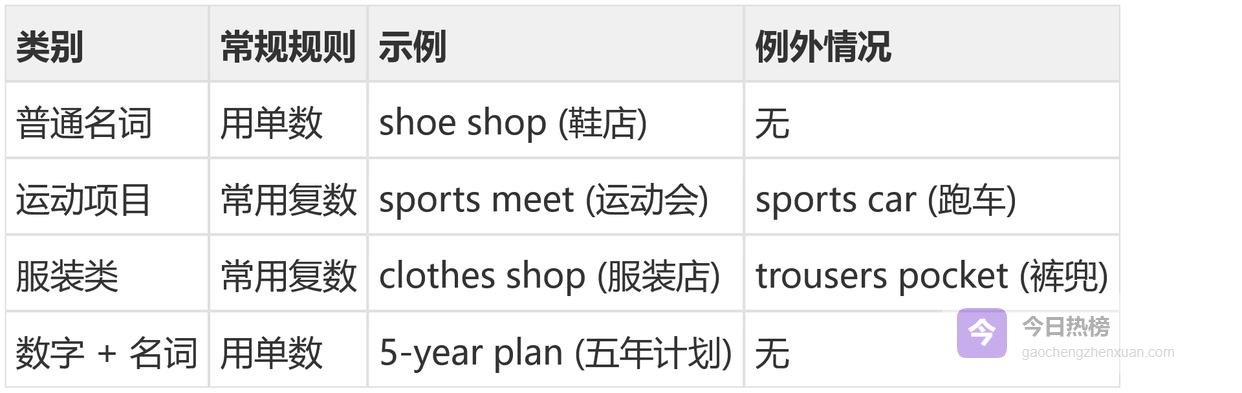 名词作定语,即用名词修饰另一个名词。大多数情况下,作定语的名词要用单数形式。这是铁律。但语言是活的,例外永远存在。我们需要从语法惯例和实际使用两个维度去理解。