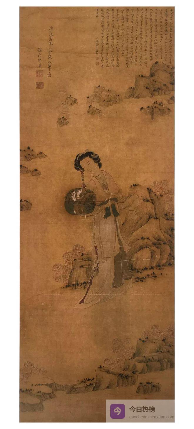 浙江大地钟灵毓秀,不仅蕴育了众多善于操弄笔墨的风流才子,也不乏精通丹青的红粉佳人。浦江才女倪仁吉以精通文史、善工书画、又擅刺绣、通晓音律的全才闻名当时。《仕女图》画一婀娜女子手执团扇,姿态柔美,婷婷玉立于山水间,山中点缀的丛菊、团扇上的荷花或隐喻该女子出身高洁隐逸世外之意,亦或是作者自况。三、行乐故事